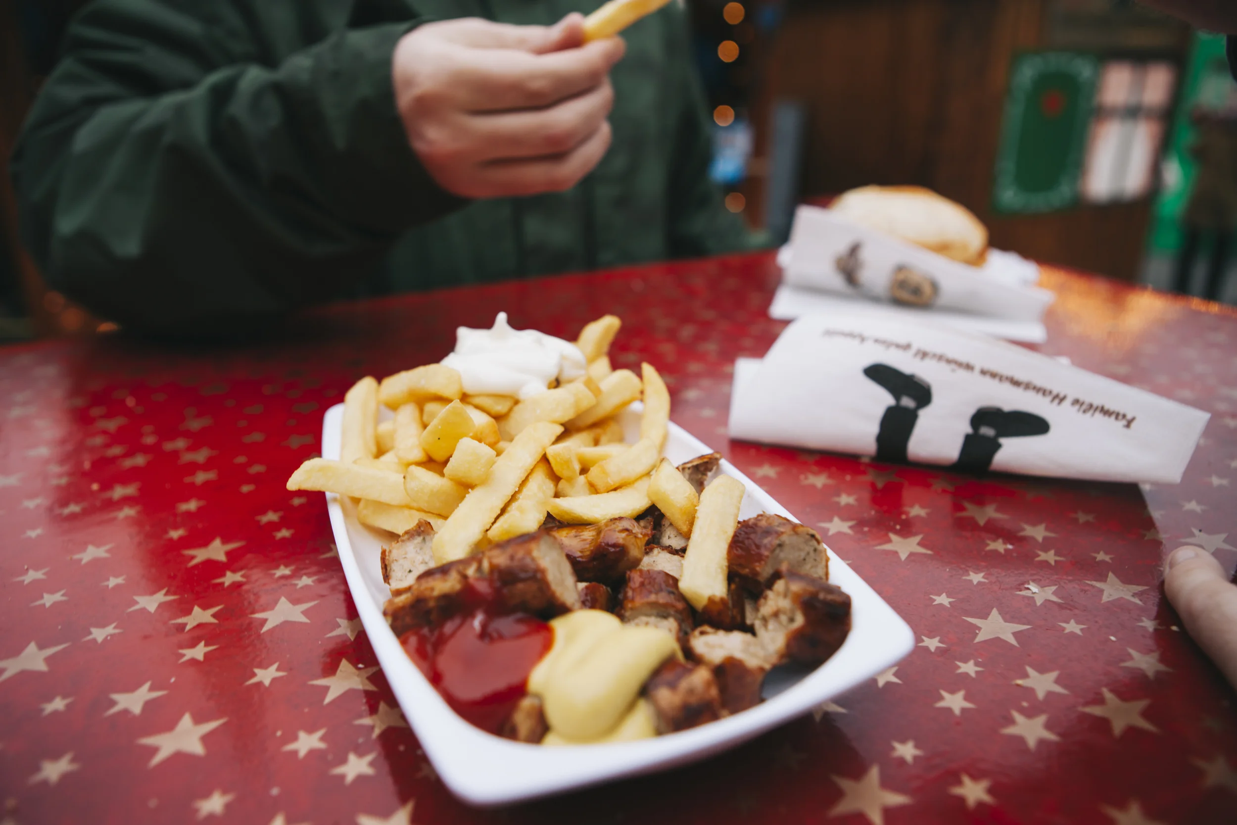 The food! We eagerly headed into their christmas markets and explored what delicious foods they had to offer. My mouth is drooling just thinking back to it. German sausage stands everywhere!! It was lovely, cheap and delicious. Dylan liked their currywurst which was chopped up and served with frites (fries). Not only do they like their sausages but they love their pommes frites, everything you ordered basically came with frites and they had huge stalls full of cut up potatoes ready to fry and serve in a cone with mayonnaise. The other food stalls that we saw around were pretzels, popcorn and candy.